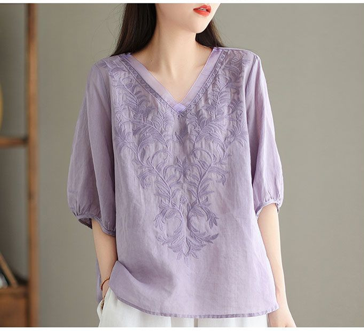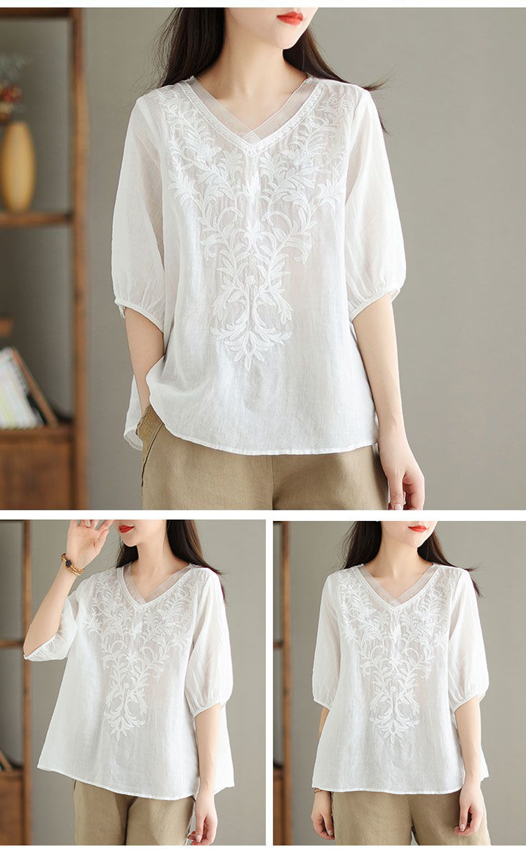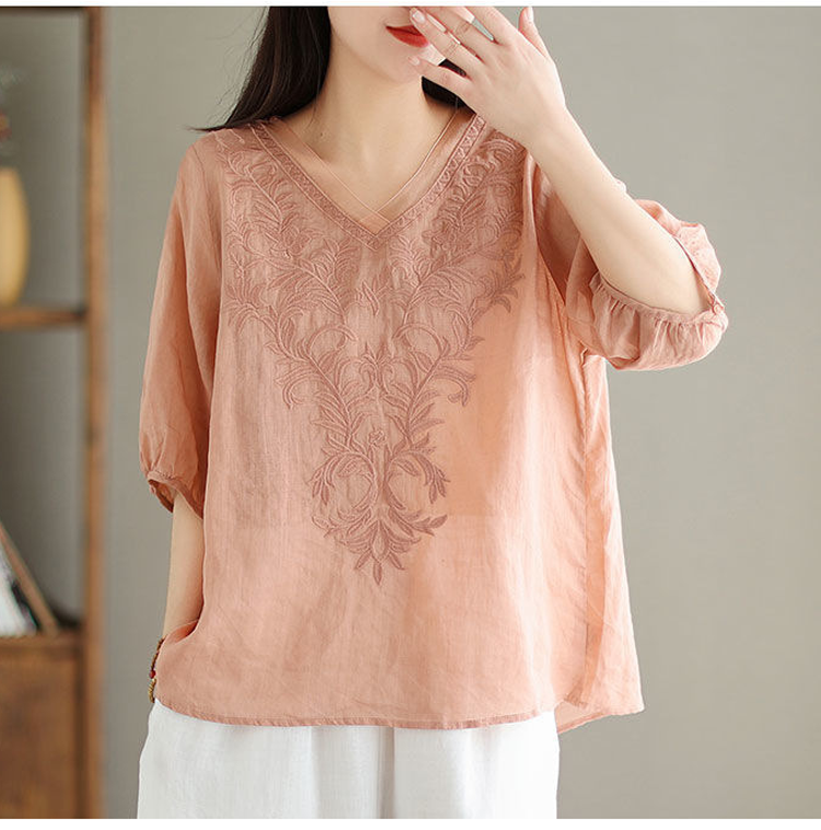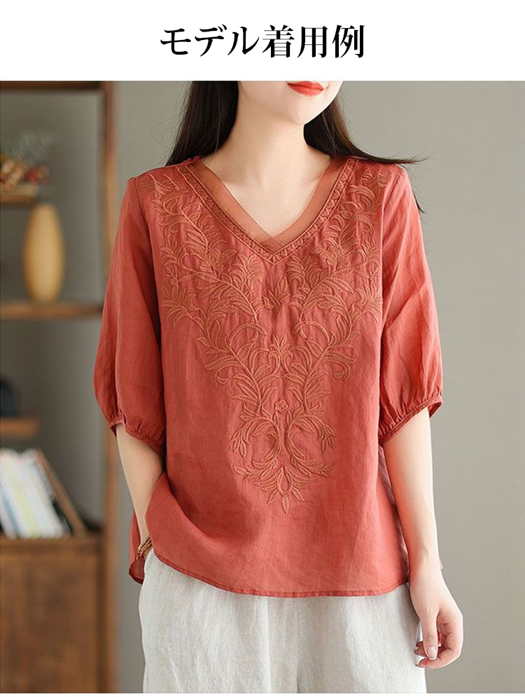 レディースコットンリネンブラウス