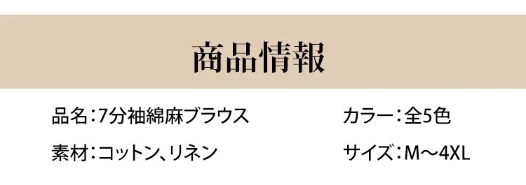 軽やかで快適な7分袖綿麻ブラウス